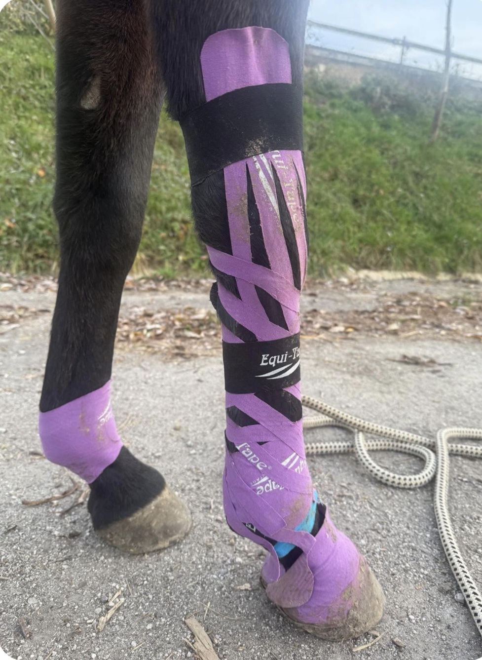 Tatiana J.: 29.04.2024 sme našli nášmu Orkánovi opuch na ľavej hrudnej končatine, privolaný bol vet a následne bola vykonaná aj korektúra kopýt. Šľacha hriala, tajže to vyzeralo tak, že bolo iba natiahnuté. V priebehu nasledujúcich dni sme nohu chladili vodou, noha bola o niečo menej opuchnutá, ale koník ešte stále viditelne kríval.